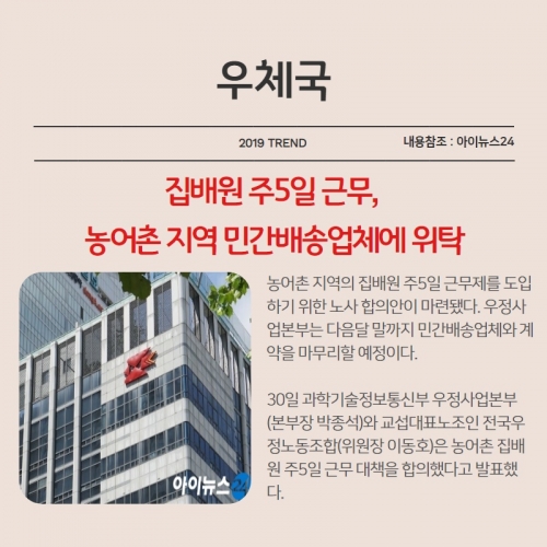 집배원 주5일 근무, 농어촌 지역 민간배송업체에 위탁