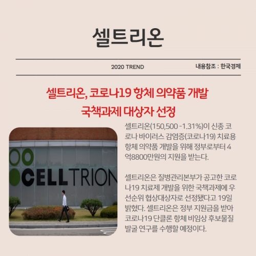 셀트리온은 질병관리본부가 공고한 코로나19 치료제 개발을 위한 국책과제에