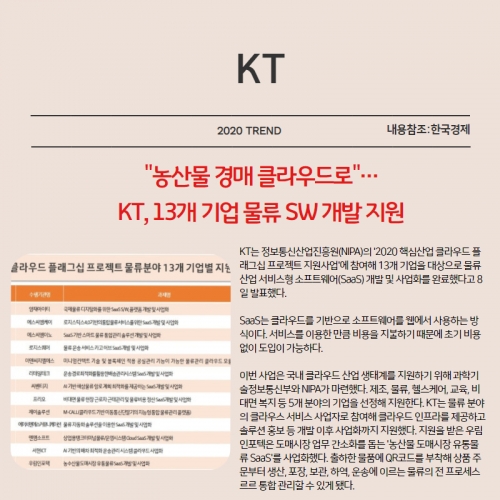 ["농산물 경매 클라우드로"…KT, 13개 기업 물류 SW 개발 지원]