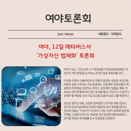 [여야, 12일 메타버스서 '가상자산 법제화' 토론회]