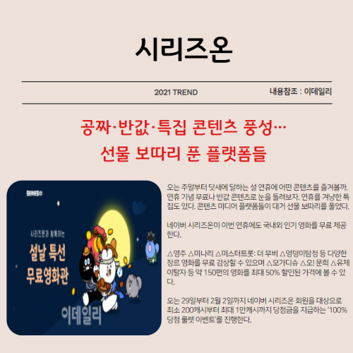 연휴를 겨냥한 특집도 있다. 콘텐츠 미디어 플랫폼들이 대거 선물 보따리를 풀었다.