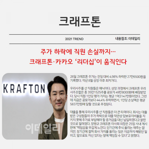 [주가 하락에 직원 손실까지…크래프톤·카카오 ‘리더십’이 움직인다]