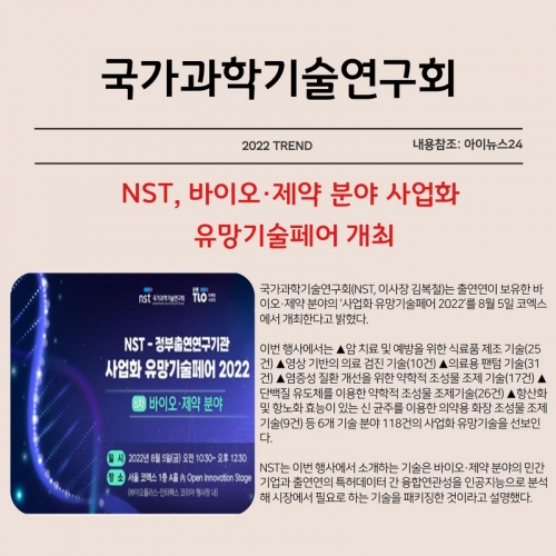 국가과학기술연구회(NST, 이사장 김복철)는 출연연이 보유한 바이오·제약 분야의