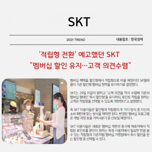 ['적립형 전환' 예고했던 SKT "멤버십 할인 유지…고객 의견수렴"]