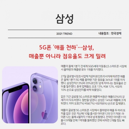 [ 5G폰 '애플 천하'…삼성, 매출뿐 아니라 점유율도 크게 밀려 ]