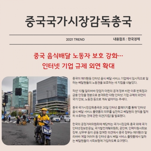 중국이 메이퇀(美團) 등 인터넷 음식 배달 서비스 기업에서