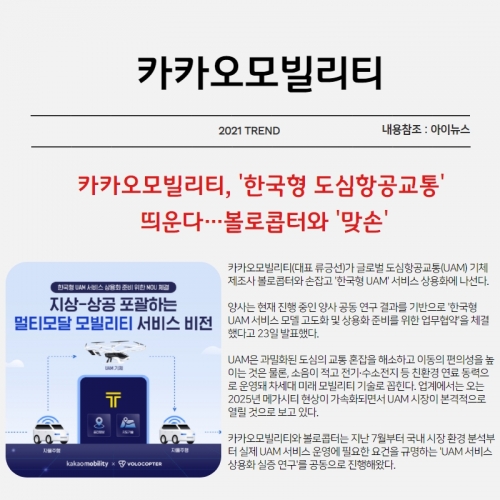 [카카오모빌리티, '한국형 도심항공교통' 띄운다…볼로콥터와 '맞손']