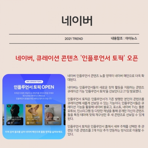 [네이버, 큐레이션 콘텐츠 '인플루언서 토픽' 오픈]