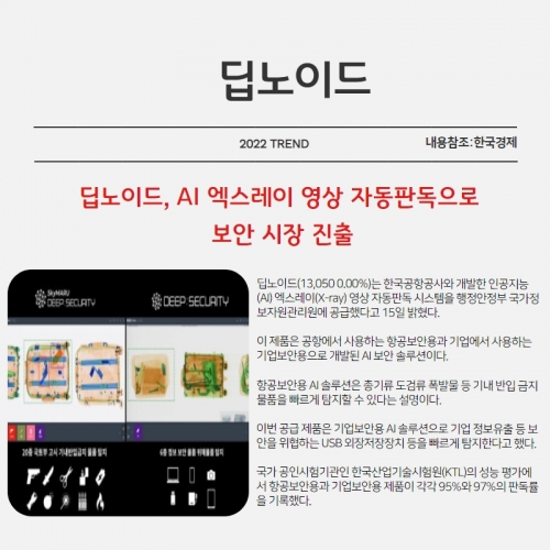 [딥노이드, AI 엑스레이 영상 자동판독으로 보안 시장 진출]
