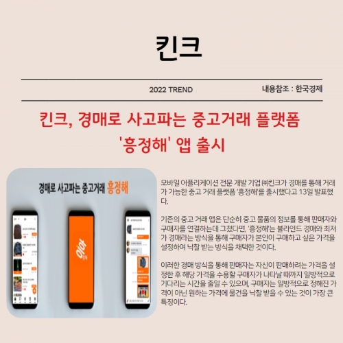 모바일 어플리케이션 전문 개발 기업 ㈜킨크가 경매를 통해 거래가 가능한 중고 거래 플랫폼 '흥정해'를 출시했다고 13일 발표했다.