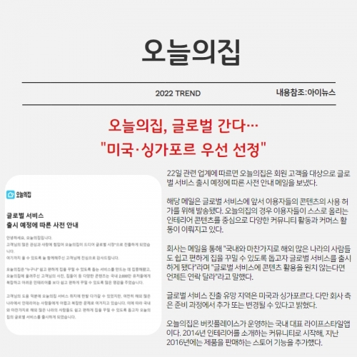 [오늘의집, 글로벌 간다…"미국·싱가포르 우선 선정"]