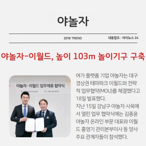 김종윤 야놀자 온라인 부문 대표와 이월드 홍영기 관리본부이사 등 양사 주요 관계자들이 참석했다.